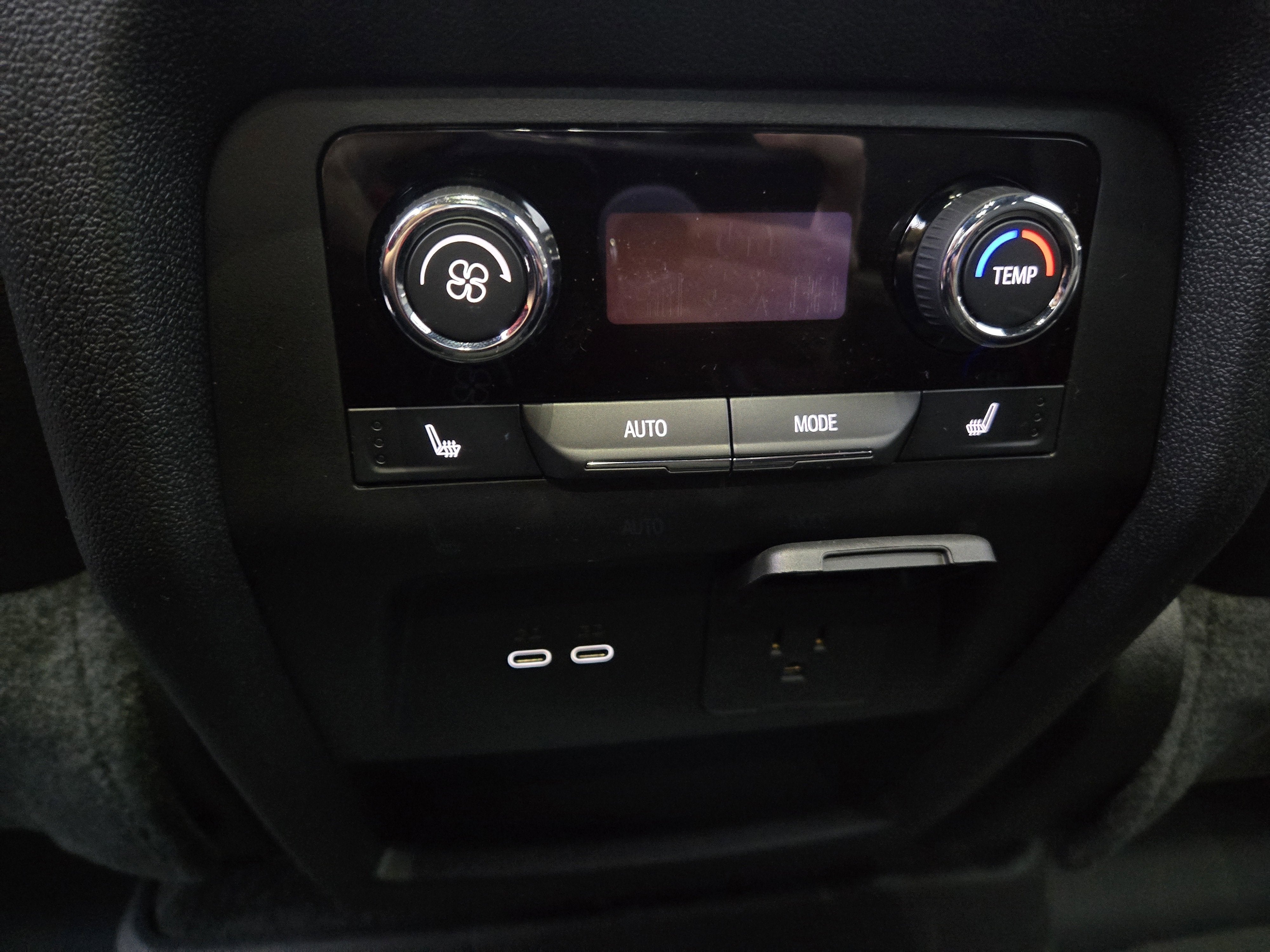 - Auxiliary controls in the rear of the cabin include air delivery mode and temperature up/down settings