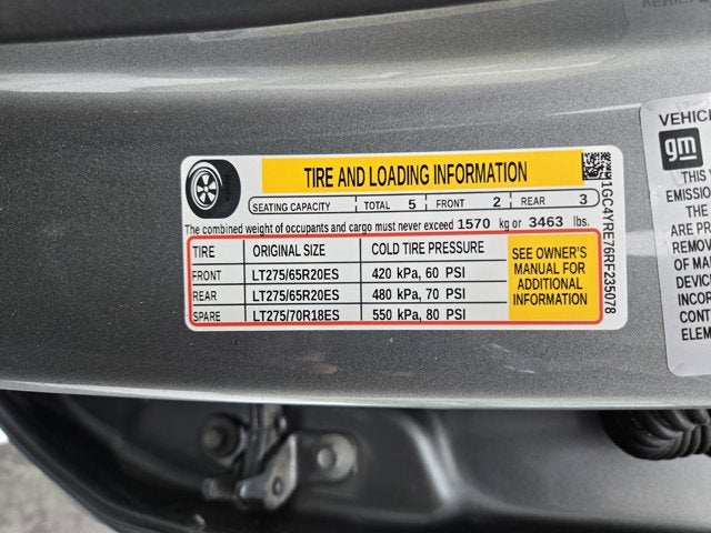 - Tires, LT275/65R20 all-terrain, blackwall